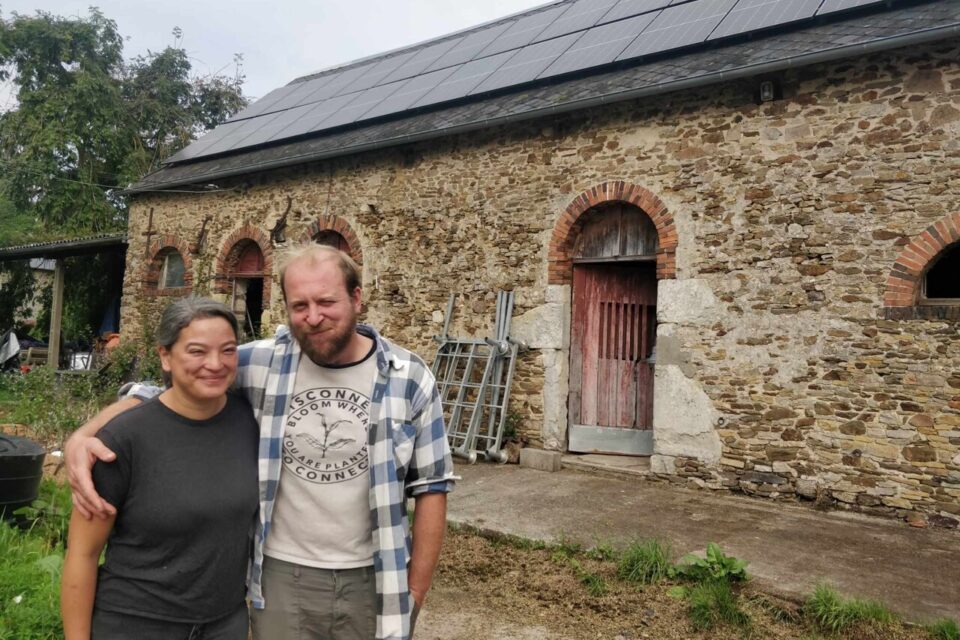 Grâce à la pose de panneaux photovoltaïques, Ariane et Thomas couvrent les besoins de leur ferme, la Ru du Plaisir, à Tournières (Calvados). Une initiative soutenue par la Région.